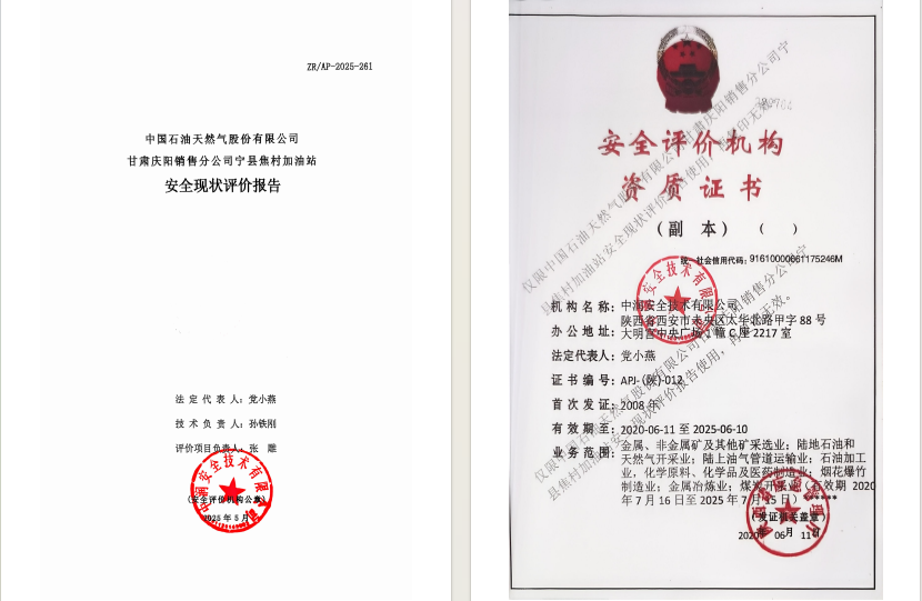 中國石油天然氣股份有限公司甘肅慶陽銷售分公司西環(huán)路加油站安全現(xiàn)狀評價報告